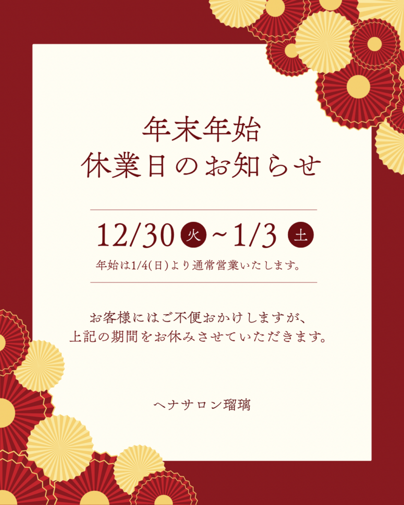 平素よりヘナサロン瑠璃をご愛顧いただき、誠にありがとうございます。